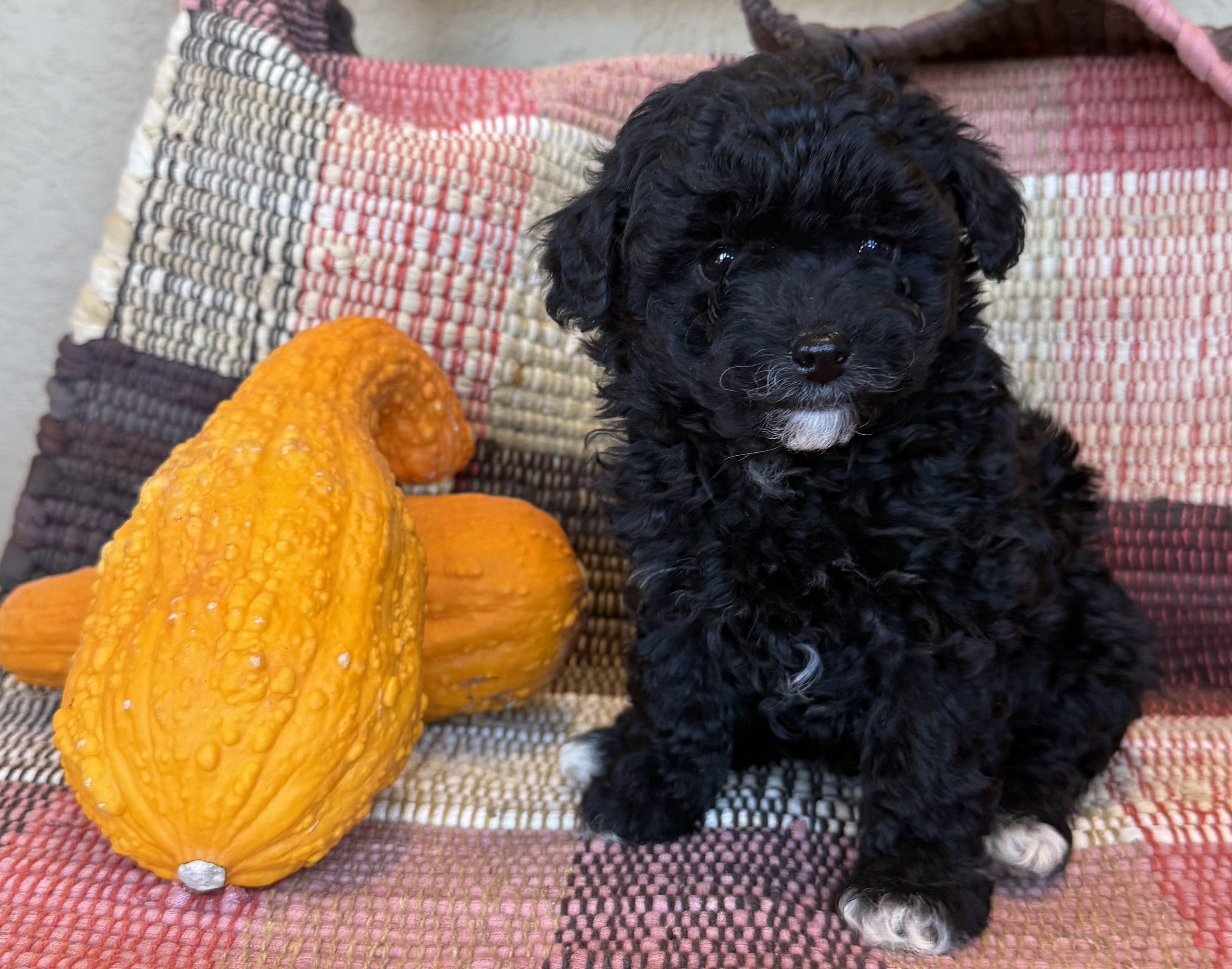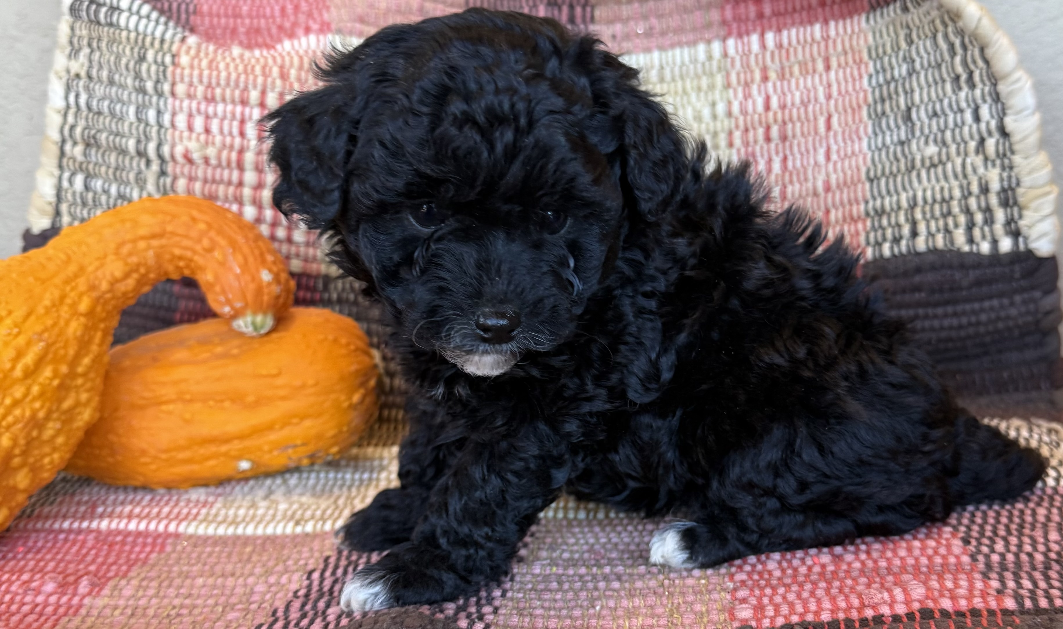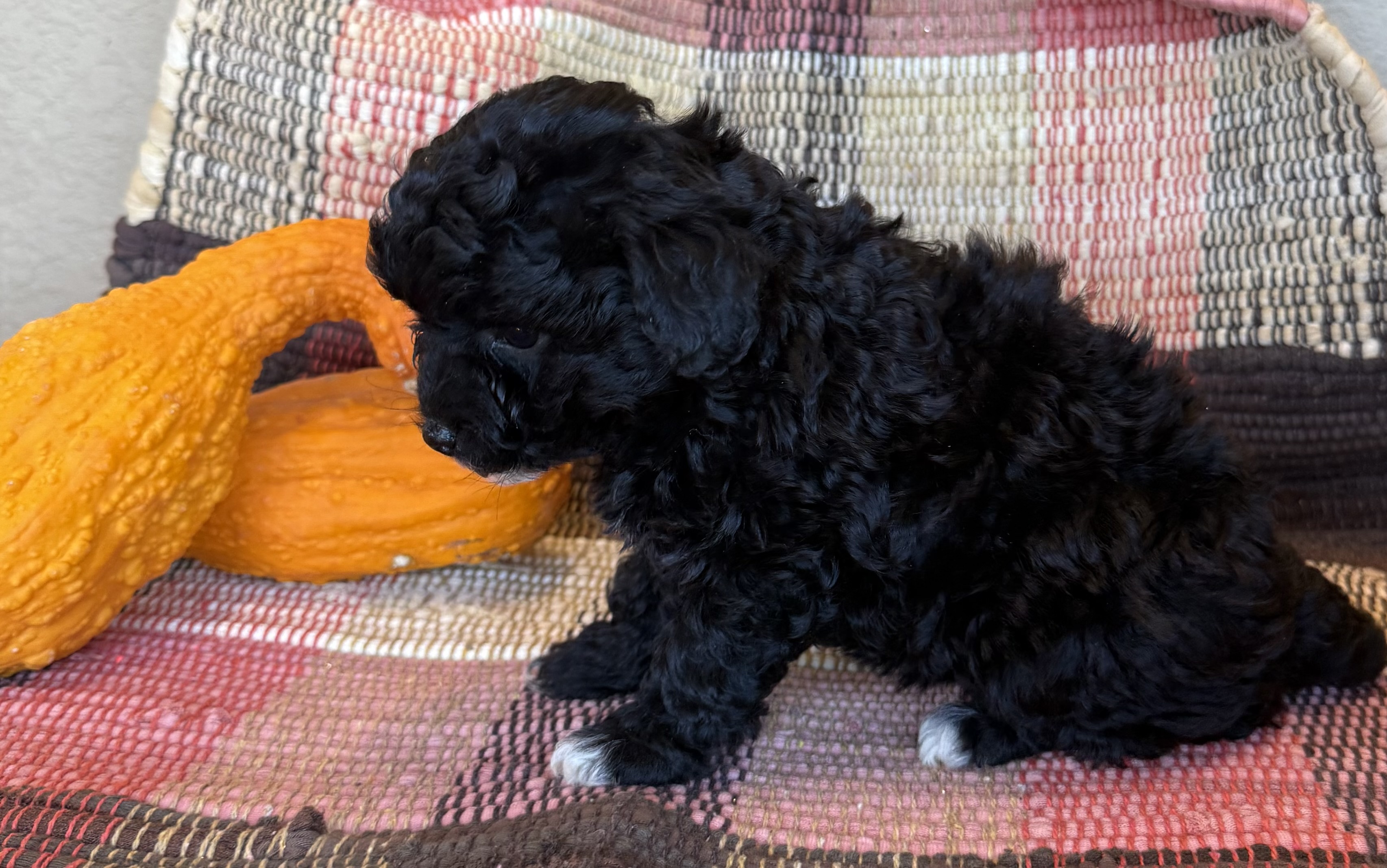 We have puppies now! Beautiful F1B Miniature Goldendoodles. 2 black males and 1 female will be ready to go to homes starting October 25th. Reserve now.