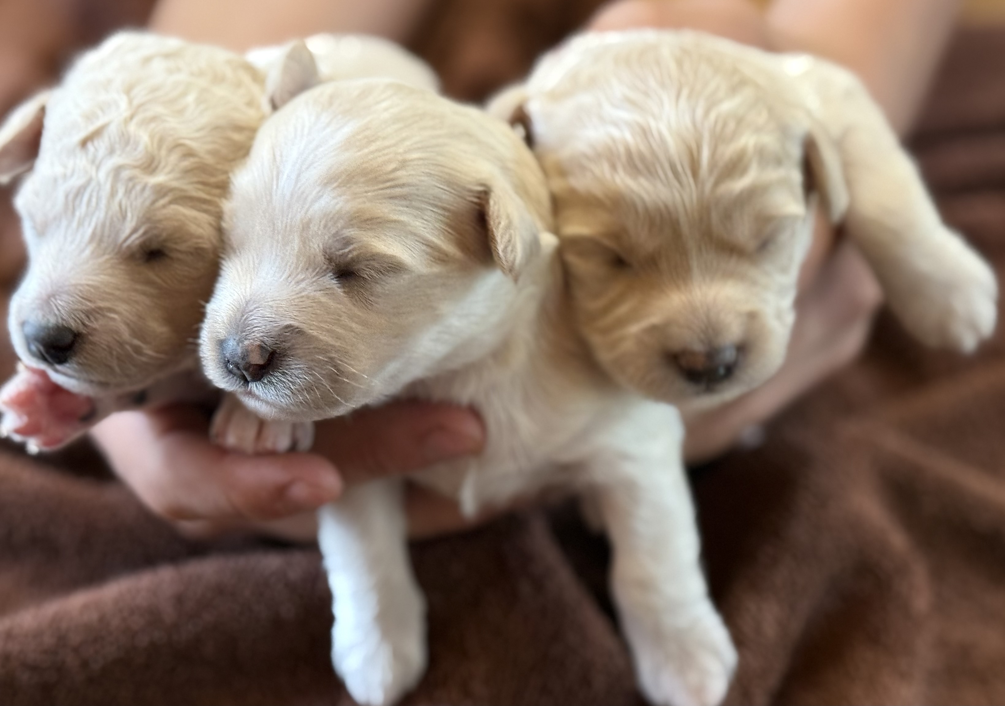 These puppies below are available to reserve now. They will be ready to go to homes in mid December 2025. 3 females and 2 males. F1B Miniature Golden Doodles. They will be in the 15-25 pound range when mature. Momma is Ford and Dad is Princeton.